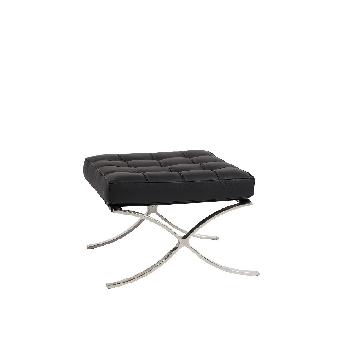 Оттоманка Barcelona разработана известным архитектором Людвиг Мис ван дер Роэ в 1929 году как дополнение к креслу Barcelona. Она создавалась для того, чтобы в итоге получить подобие шезлонга и сделать сидение на кресле еще более удобным. Подушка обтянута высококачественной натуральной кожей Премиум чёрного цвета, к каркасу крепится ремнями. Основание оттоманки — стальная рама на двух ножках из нержавеющей стали, полированная вручную.
