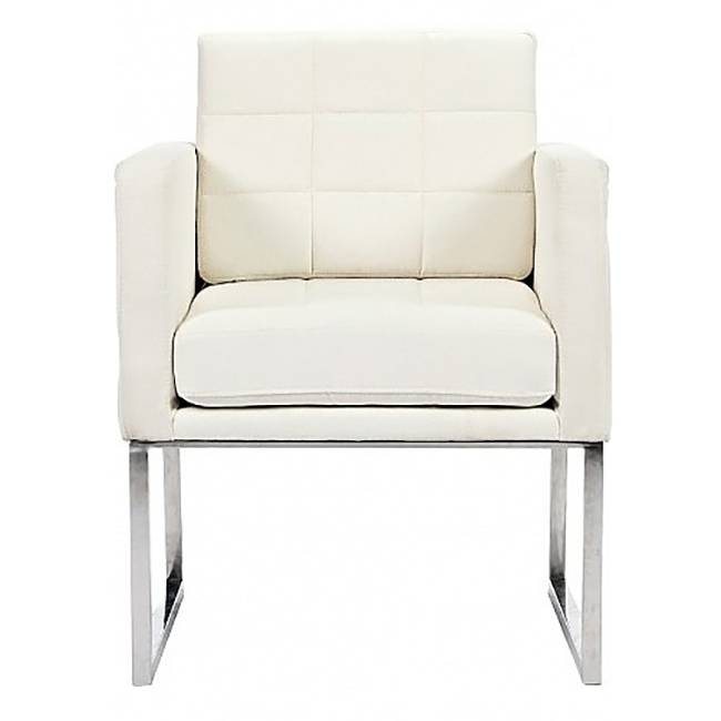 Кресло Jason создано дизайнерами в строгом стиле. Удобная модель имеет неординарный и необычный дизайн, станет великолепным украшением интерьера. У кресла прочный деревянный каркас, его строгие геометрические формы удачно подчеркивают прямоугольные ножки из хромированного металла. Удобное сиденье из мягкого поролона, обтянутого тканью белого цвета, достаточно комфортное.