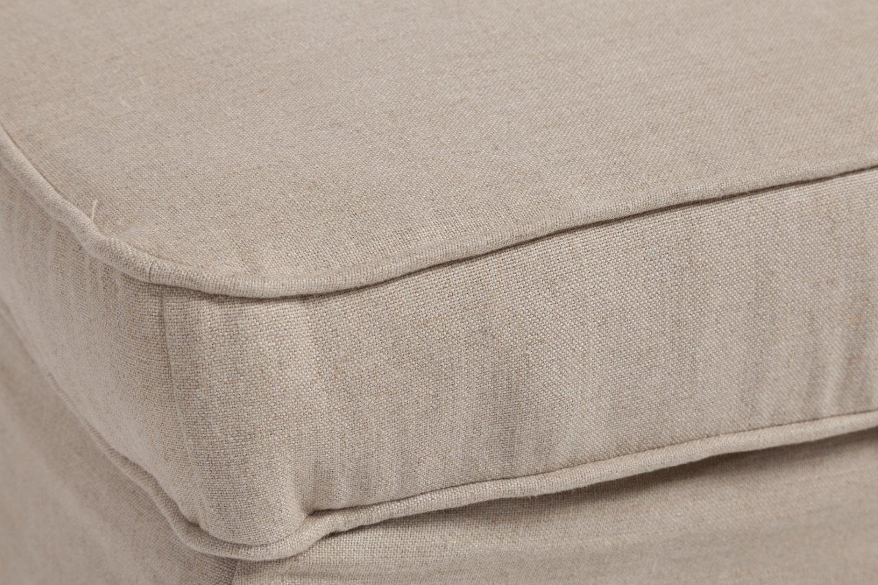 Пуф Hanhy — надежный и долговечный вариант с жестким деревянным каркасом, мягким сиденьем из мебельного поролона, выполнен в виде куба, с тканевым покрытием из натурального льна бежевого цвета. Пуф имеет «второе дно» — небольшую, но достаточно вместительную ёмкость, расположенную под крышкой, в которую можно сложить различные мелочи, отлично подойдет к туалетному столику.