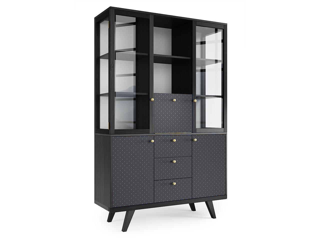 Буфет Thimon порадует увлеченных коллекционеров и неравнодушных к прекрасному - эта модель упорядочит домашнюю библиотеку, сохранит коллекцию фарфора, а также скроет личные вещи от посторонних. Оригинальная коллекция принтов на фасадах и неповторимые оттенки натурального дуба завершают образ буфета, который займет центральное место в гостиной или столовой.Особенности.Прозрачные боковые фасады со стеклом.Распашные дверцы изготовлены из массива дуба.Центральный фасад с откидной петлей и стопором.Нагрузка на каждую полку до 20 кг.Европейская фурнитура с плавным ходом и доводчиками.Предусмотрено крепление к стене.Материалы.Основание – массив дуба.Корпус – МДФ, натуральный шпон дуба.Фасады – МДФ, массив дуба.Каркас верхней секции – массив дуба, МДФ, натуральный шпон дуба, ЛДСП.Ящики, полки и перегородки нижней секции – ЛДСП, светло-серый.Фурнитура – петли с плавным закрыванием, направляющие с доводчиками, стальные крепежные элементы. Покрытие – тонировка, матовый лак, эмаль, принт.Ручки – античная латунь.