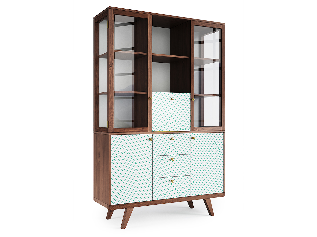 Буфет Thimon порадует увлеченных коллекционеров и неравнодушных к прекрасному - эта модель упорядочит домашнюю библиотеку, сохранит коллекцию фарфора, а также скроет личные вещи от посторонних. Оригинальная коллекция принтов на фасадах и неповторимые оттенки натурального дуба завершают образ буфета, который займет центральное место в гостиной или столовой.Особенности.Прозрачные боковые фасады со стеклом.Распашные дверцы изготовлены из массива дуба.Центральный фасад с откидной петлей и стопором.Нагрузка на каждую полку до 20 кг.Европейская фурнитура с плавным ходом и доводчиками.Предусмотрено крепление к стене.Материалы.Основание – массив дуба.Корпус – МДФ, натуральный шпон дуба.Фасады – МДФ, массив дуба.Каркас верхней секции – массив дуба, МДФ, натуральный шпон дуба, ЛДСП.Ящики, полки и перегородки нижней секции – ЛДСП, светло-серый.Фурнитура – петли с плавным закрыванием, направляющие с доводчиками, стальные крепежные элементы. Покрытие – тонировка, матовый лак, эмаль, принт.Ручки – античная латунь.