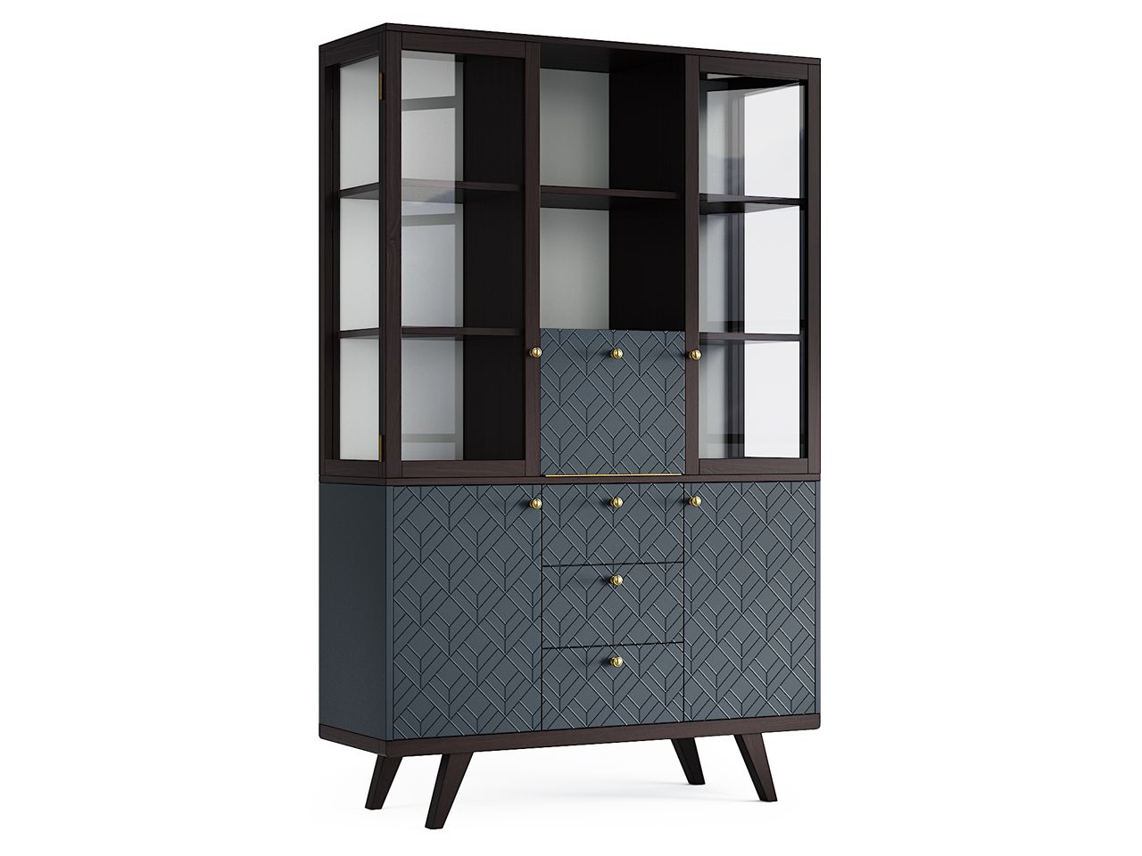 Секции с полками, скрытыми за стеклянными дверцами буфета Thimon v2, торжественно представят семейные коллекции, позволяя рассмотреть детали и защищая содержимое от пыли. В нижней части буфета за глухими фасадами с привлекательным узором располагаются полки и ящики, подходящие для хранения многочисленных мелочей.Особенности.Прозрачные боковые фасады со стеклом.Распашные дверцы изготовлены из массива дуба.Центральный фасад с откидной петлей и стопором.Нагрузка на каждую полку до 20 кг.Европейская фурнитура с плавным ходом и доводчиками.Предусмотрено крепление к стене.Материалы.Основание – массив дуба.Корпус – МДФ.Фасады – МДФ, массив дуба.Каркас верхней секции – массив дуба, МДФ, натуральный шпон дуба, ЛДСП.Ящики, полки и перегородки нижней секции – ЛДСП, светло-серый.Фурнитура – петли с плавным закрыванием, направляющие с доводчиками, стальные крепежные элементы. Покрытие – тонировка, матовый лак, эмаль.Ручки – античная латунь.