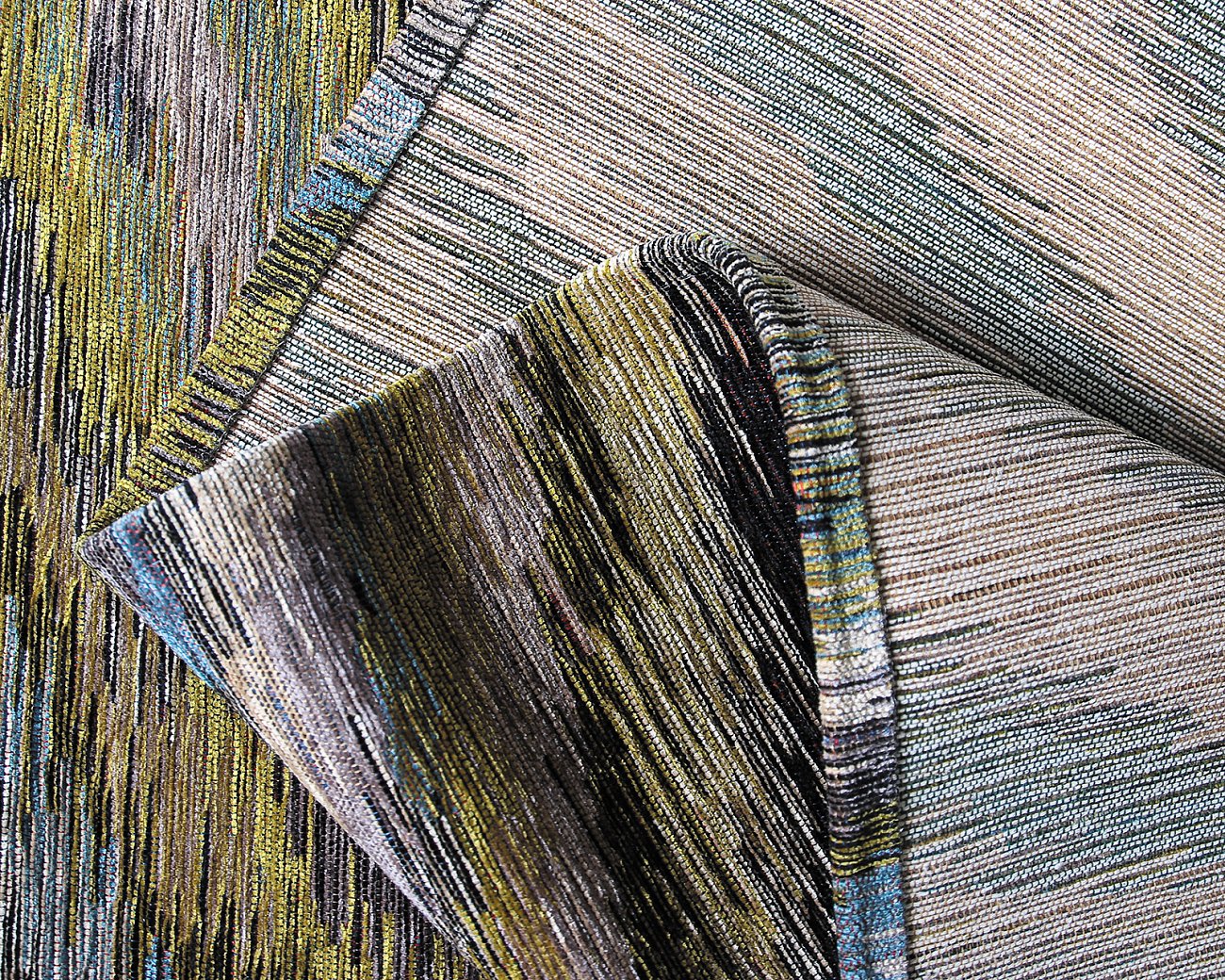 Ковер ALINA WAVE - смелое, креативное решение для создания запоминающегося, самобытного и атмосферного интерьера. Многоцветный зигзаг с размытыми границами рисунка выполнен в цветовой палитре актуальных трендов. В ковре нет главного цвета, а есть идеальный баланс бежевого, мышиного серого, бирюзового, травяного и желто-зеленого. Любой из этих цветов может стать доминантой в оформлении интересного и стильного интерьера.