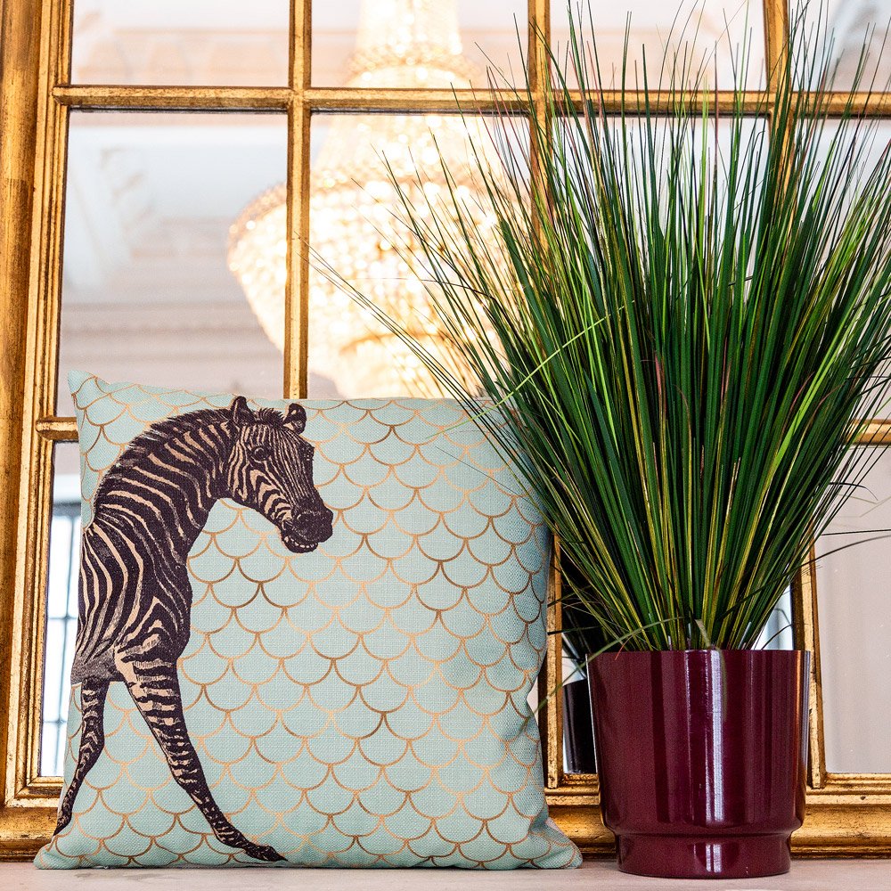 Чтобы быть в авангарде интерьерной моды, обращаем внимание на тренды в дизайне одежды. А там - сплошь и рядом леопардовые принты, полосатые зебры да пятнистые жирафы. Берем на вооружение эти тенденции и смело реализуем их в наших интерьерах! Фоновый орнамент на подушках нанесен краской, имитирующей золото. Игра различных оттенков желтого и бежевого цветов создает иллюзию блестящего орнамента.