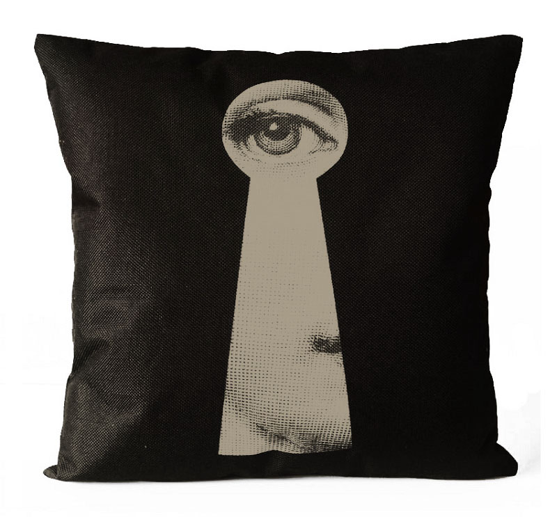 Портрет прекрасной Лины Кавальери на предметах декора — визитная карточка известного итальянского дизайнера Пьеро Форназетти Piero Fornasetti. Создав сотни вариантов ее портрета, Пьеро Форназетти подарил ее облику вечность. На этой подушке Лина загадочно смотрит на вас в замочную скважину. Столь необычный рисунок в очередной раз демонстрирует собственный оригинальный стиль Форназетти и одну из главных тем его творчества. Оригинальная подушка станет отличным подарком для всех ценителей современного искусства.