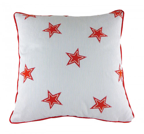 Небольшая квадратная подушка, покрыта белой хлопковой тканью, декорированной красными звёздами. Мягкий и упругий наполнитель хорошо поддерживает спину, поможет расслабиться и принять удобную позу. Подушка может выступать в качестве обязательного предмета в спальной комнате или же просто как элемент дизайна в гостиной, создаст атмосферу комфорта и уюта. Также она станет прекрасным подарком.
